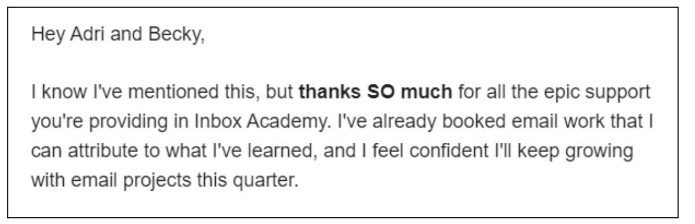 In short, Inbox Academy is the course we wish we had taken to help us go from newbie freelancers to highly paid email pros.