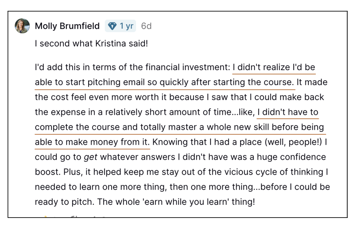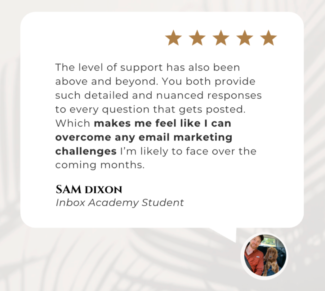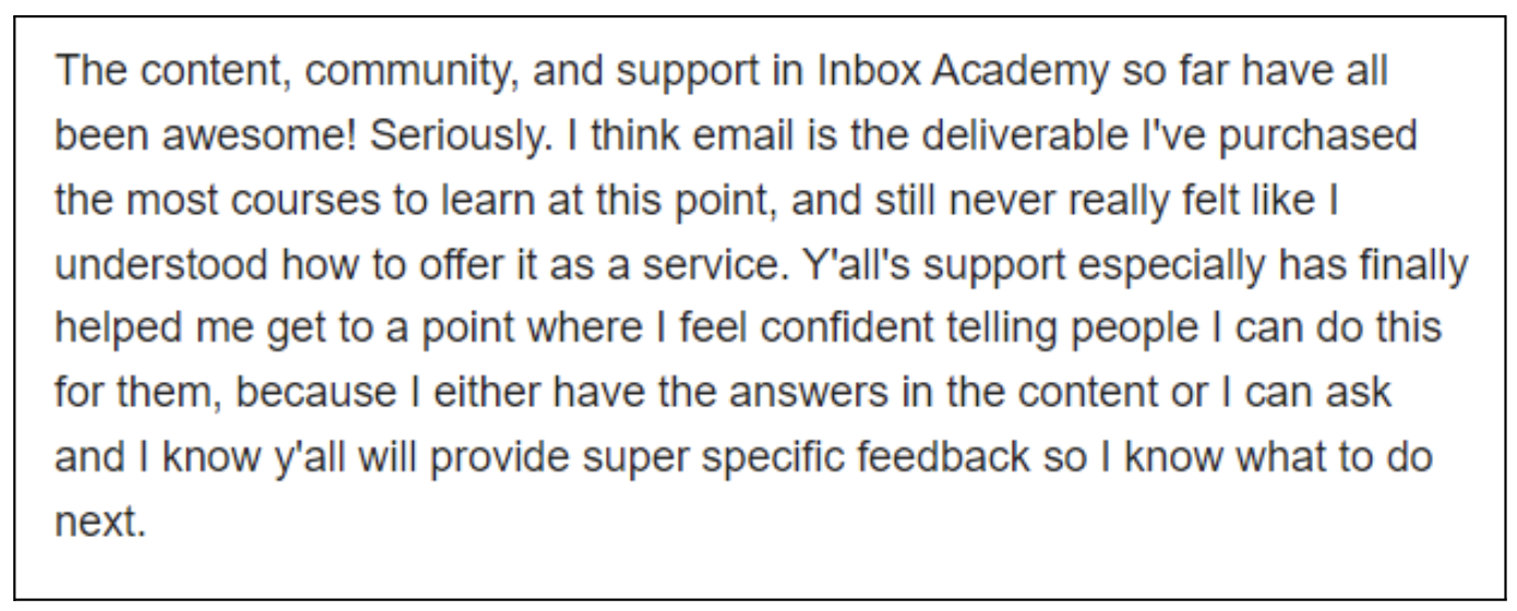 And a large percentage of our students already have some experience with copywriting and/or email marketing, and they say they’ve gotten tremendous value from Inbox Academy!