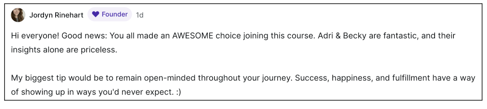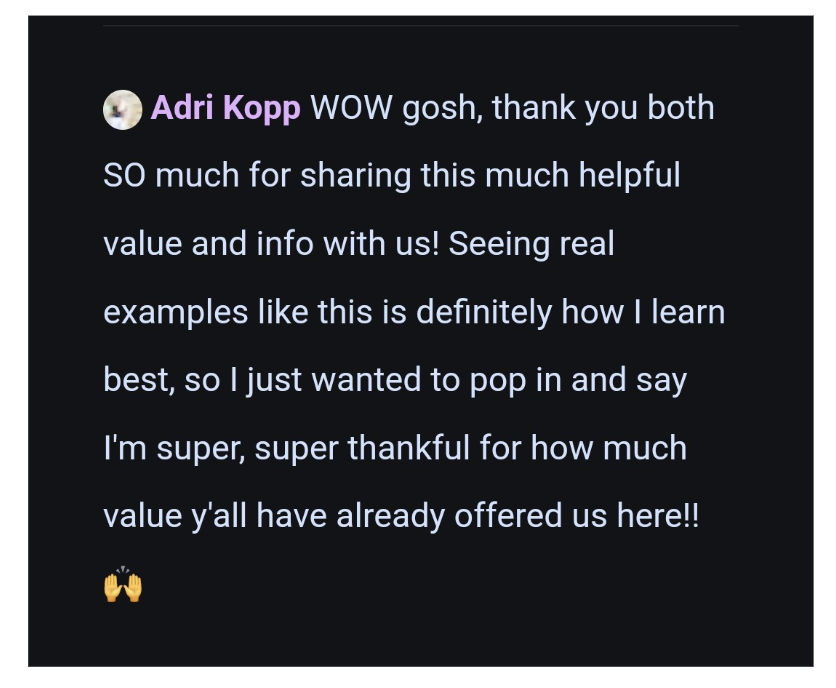 And if, somehow, there’s something you need that’s not in there, you can just tell us! We’ll walk you through it step-by-step on a Q&A call and add it to the resources for future students. 💪